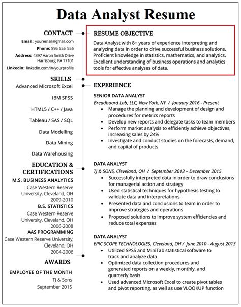 Resume For Data Analyst With No Experience