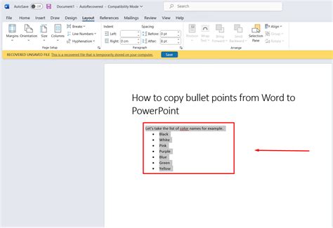 how to copy bullet points in word